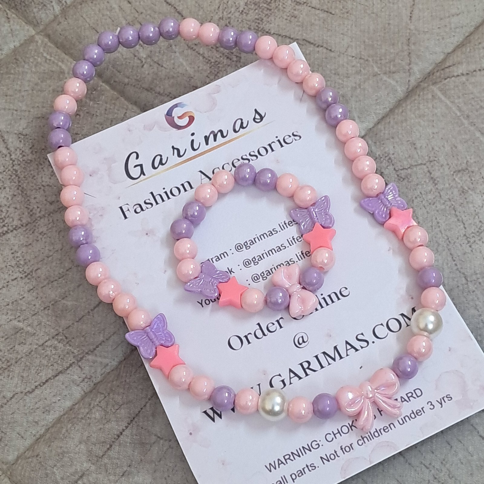 • Girls Pink and Purple Necklace and Bracelet Combo | GARIMAS